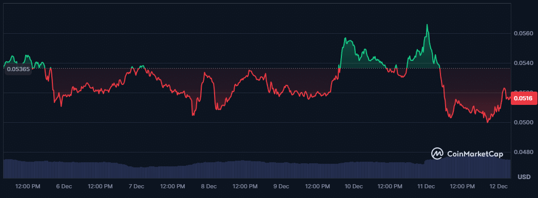 Le prix du token se situe autour de 0,053 $ et se maintient dans une phase calme mais cohérente tant que les volumes restent modérés.