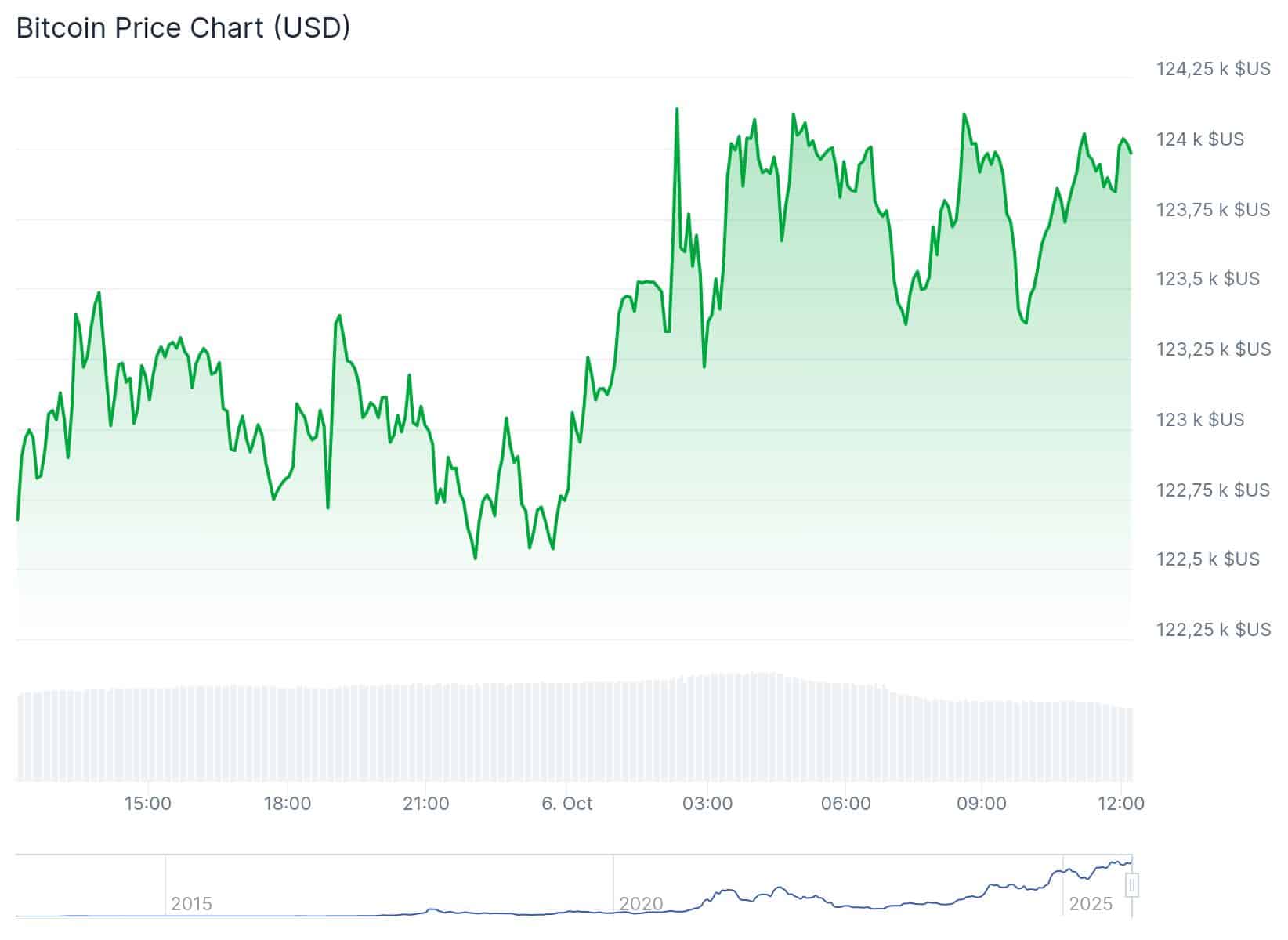 D’un autre côté, le Bitcoin se valorise à environ 123 722 dollars, légèrement en hausse de 1,6 % en l’espace de 24 heures. Pourtant, dans un environnement économique mondial encore tendu, inflation, politique monétaire restrictive et incertitudes géopolitiques, la situation s’améliore tout de même.