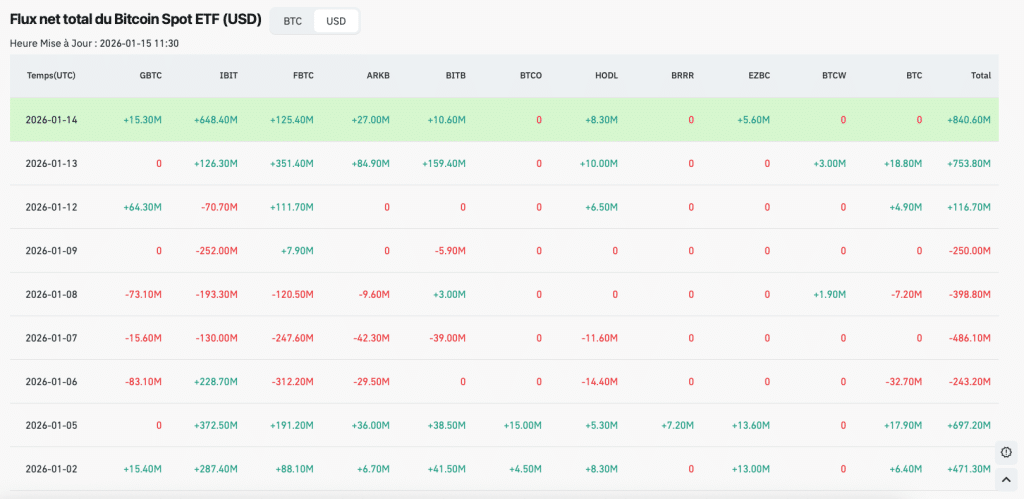 Ce cycle, la mécanique est claire : les ETF spot servent de canal de transmission entre l’appétit pour le risque et l’exposition au BTC. Début 2026, on a vu des entrées solides (plusieurs centaines de millions sur certaines séances), puis une bascule rapide vers des sorties nettes sur plusieurs jours, un schéma typique de réallocation tactique, pas forcément un désamour structurel.