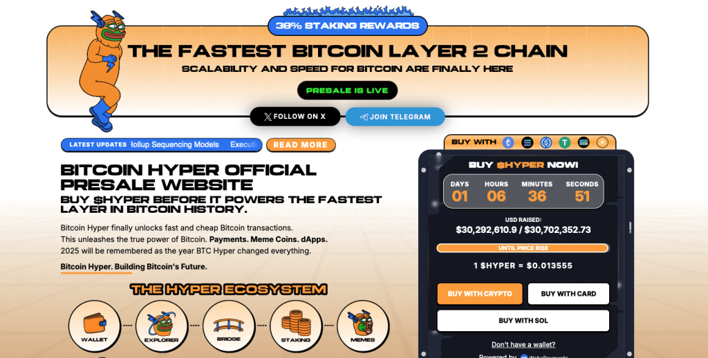 En effet, sur le réseau principal, hors LN, les transactions mettent entre 15 à 20 minutes pour être validées. C’est ici que des projets comme Bitcoin Hyper, toujours en prévente, prennent tout leur sens pour sauver l’écosystème BTC et former de nouveaux sommets.