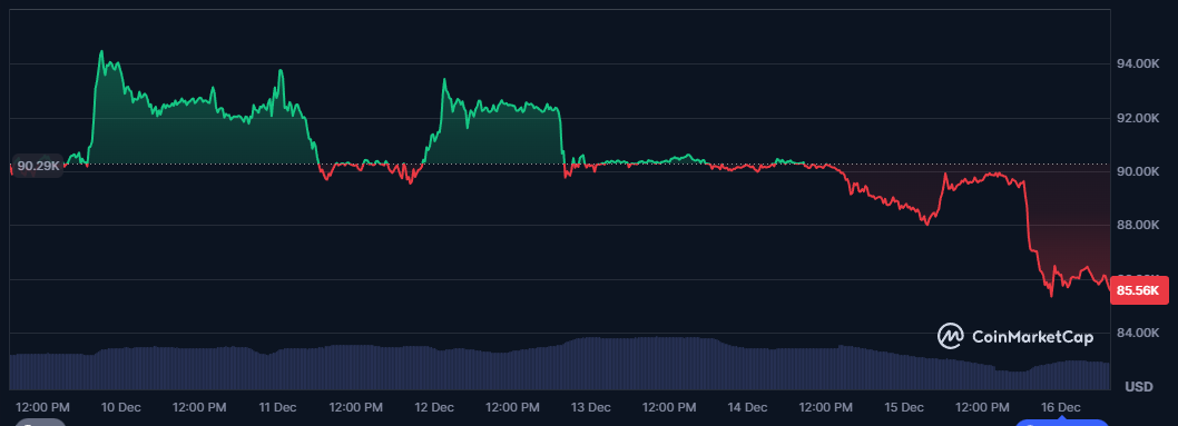 Le Bitcoin a glissé sous les 86 000 $, alimentant un déséquilibre de liquidité alors que les petits investisseurs continuent d’acheter la baisse. Dans le même temps, les gros portefeuilles profitent de cette demande pour alléger leurs positions, ce qui maintient une pression baissière persistante.