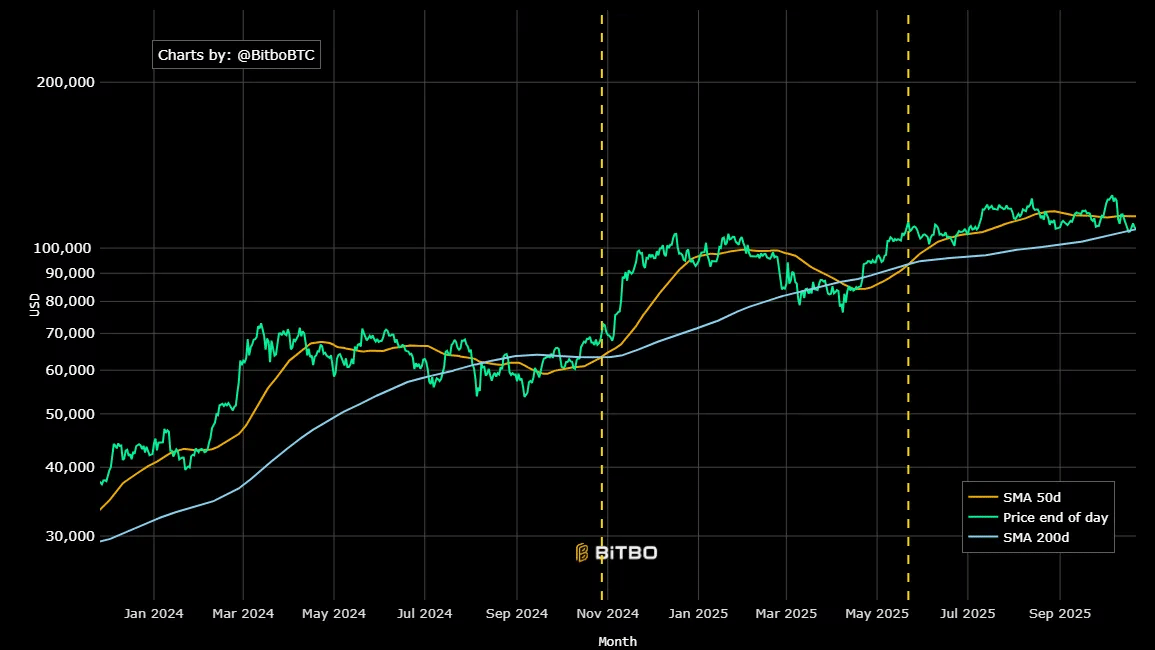 Actuellement, le Bitcoin évolue autour de 108 200 dollars, en recul d’environ 4 % sur 24 heures. Geoffrey Kendrick souligne que, même avec cette diminution, la moyenne mobile sur 50 semaines, un indicateur technique crucial, continue de servir de niveau de soutien significatif depuis le début de l’année 2023.