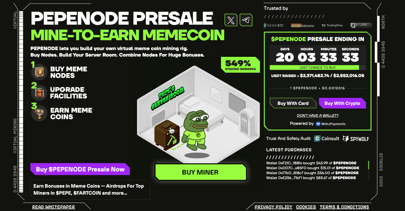 PEPENODE : le « mine-to-earn » version meme coin, entre gamification et promesse de rendements