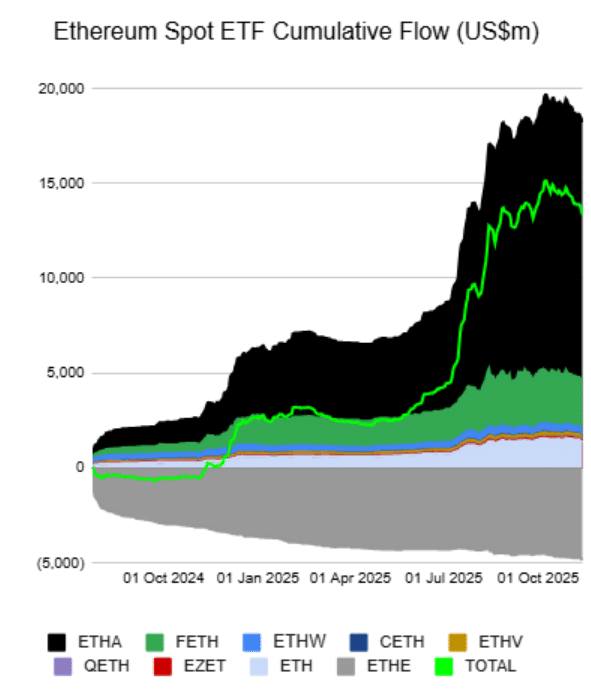 En parallèle, la part d’Ethereum oscille, elle, autour de 14-15 % de la capitalisation totale, un niveau proche de ses plus hauts annuels, soutenu par les ETF spot et la DeFi. Et comme expliqué dans notre analyse sur les ETF ETH, ces flux montent en puissance. Par conséquent, ils renforcent sensiblement le scénario d’un rééquilibrage progressif.