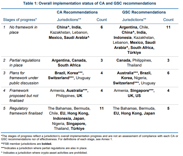 Dans le rapport du FSB, il est précisé que c’est le foisonnement des cadres juridiques ainsi que la qualité des données et les limites imposées par le secret juridique observé à l’échelle internationale qui ont précipité la régulation des stablecoins et des cryptoactifs. En un mot, chaque État agit à son propre rythme, ce qui crée des trous dans le fil de la surveillance du secteur.