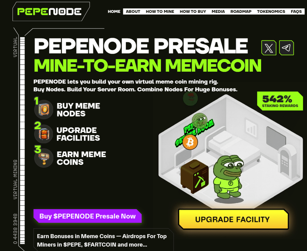 Pepenode se présente comme un écosystème mine to earn où l’utilisateur construit un rig virtuel et optimise sa production via un gameplay dynamique. Le concept vise les fans de meme coins qui veulent une expérience ludique, tout en conservant une logique de rareté et de circulation.