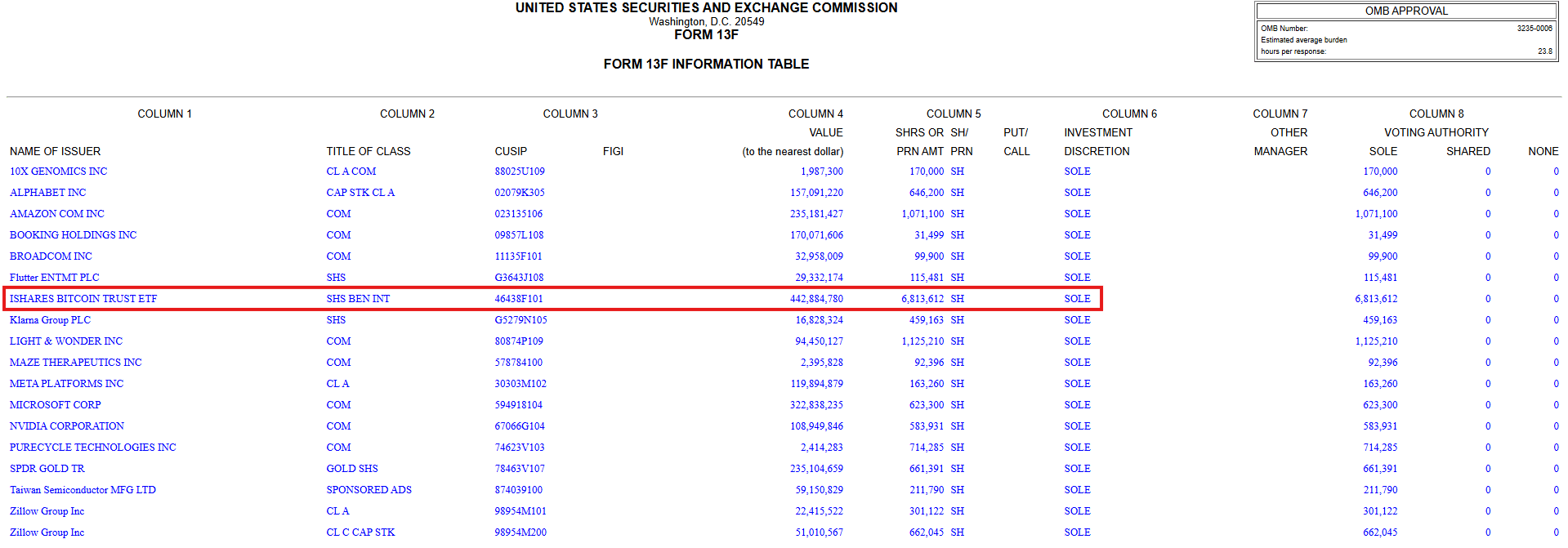 À la fin septembre 2023, Harvard a porté sa participation dans le fonds IBIT à 6,8 millions de parts qui ont été déclarées d’une valeur d’environ 442,8 millions de dollars. Il s’agit d’une forte augmentation de 257 % par rapport aux 1,9 million de parts de juin.