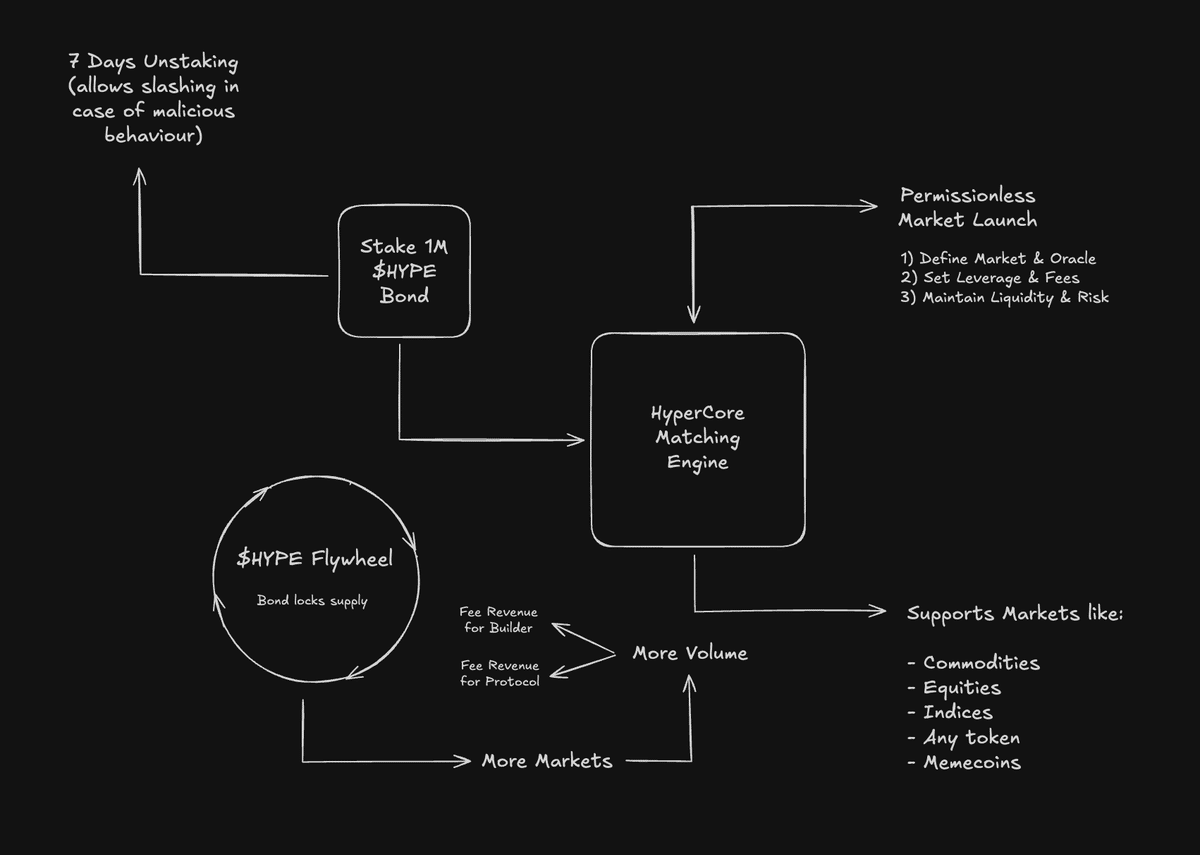 Jusqu’à présent, l’établissement de marchés perpétuels sur Hyperliquid requérait une approbation du protocole. Avec HIP-3, tout utilisateur a désormais la possibilité de démarrer un marché perpétuel sans validation préalable, à condition de déposer un million de jetons HYPE. Cette somme servira de garantie de sécurité et pourra être partiellement confisquée si le marché est jugé malveillant ou non conforme par les validateurs du réseau.