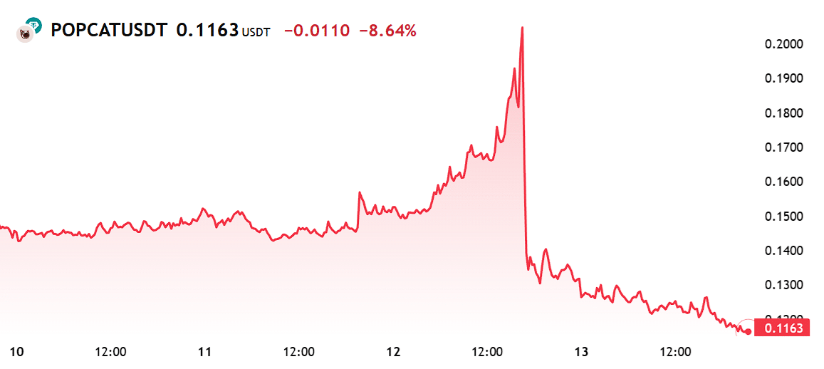 Rappelons que POPCAT est l’un des memecoins félins emblématiques de Solana, et montre une communauté active assortie d’un historique de variations extrêmes. D’après les données de marché, le token affiche tout de même plus de 100 millions de dollars de capitalisation et un volume quotidien très élevé, preuve de l’appétit spéculatif autour de cet actif purement “meme”.