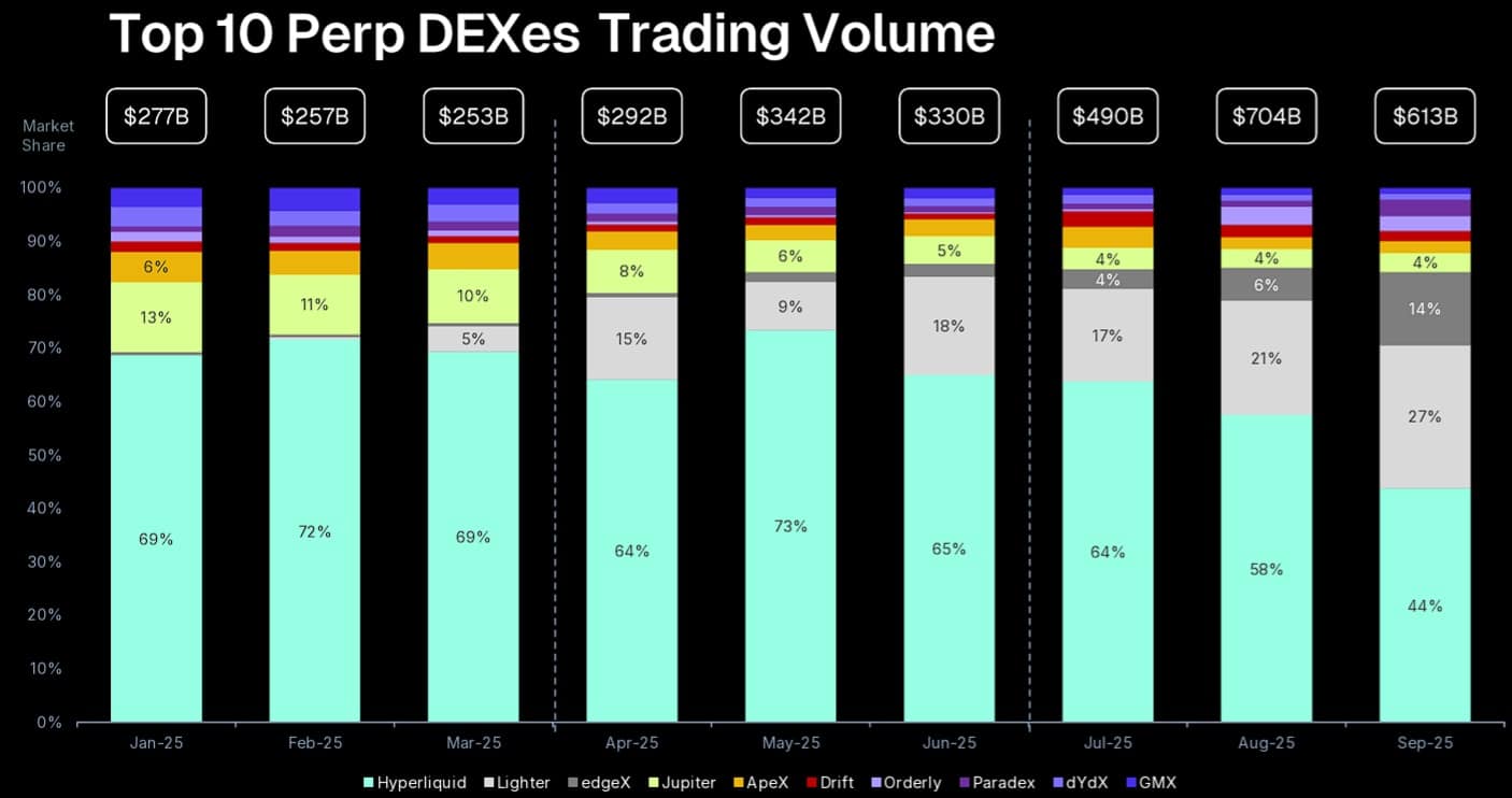 Face à Hyperliquid et ses autres rivaux, la bataille se livre autour de la preuve et de la latence, pas seulement sur l’incitation. Ainsi, il devient évident que l’écosystème perps se professionnalise, attirant les fonds de premier plan à mesure que les volumes mensuels explosent.