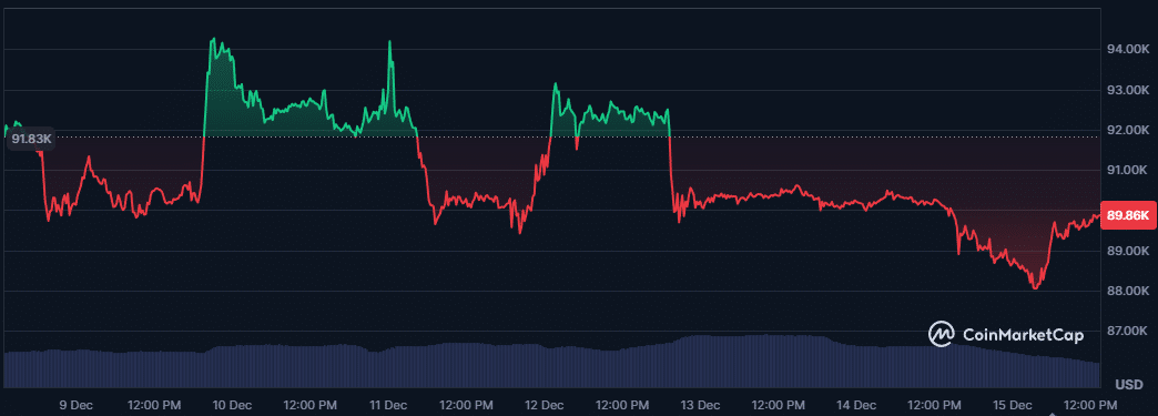 Ce repli marque le niveau le plus faible enregistré depuis début décembre, lorsque le BTC sortait d’une correction l’ayant ramené vers 84 000 $. Malgré tout, la cryptomonnaie a rapidement retrouvé de la vigueur, repassant au-dessus du seuil des 89 000 $.