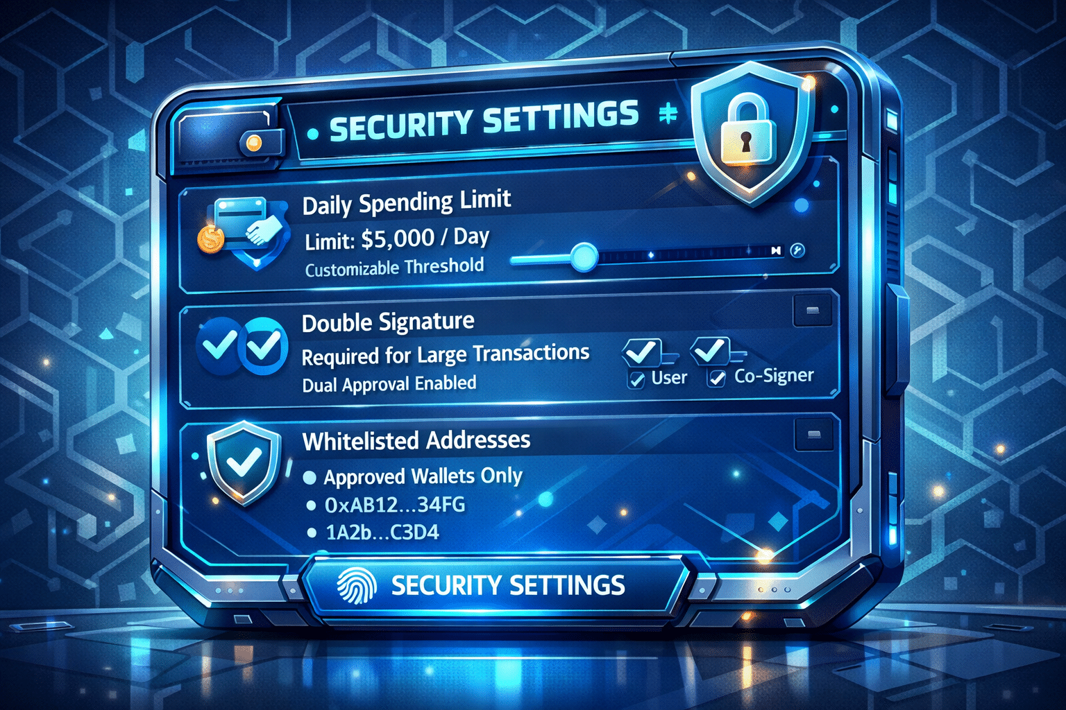 Si un attaquant parvient à accéder à votre interface, il se retrouve bloqué par des règles de sécurité inscrites directement dans le smart contract de votre portefeuille.