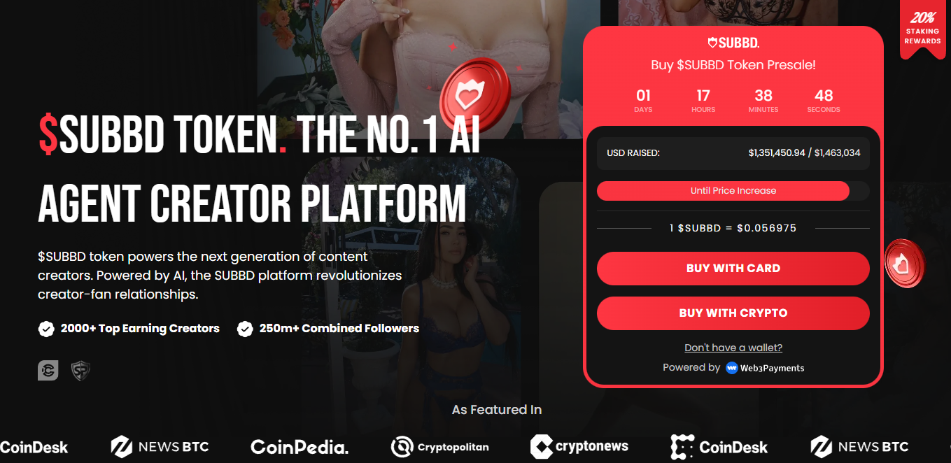 La prévente atteint désormais 1,35 million de dollars, avec un objectif de 1,46 million de dollars. SUBBD progresse parce qu’il propose une vision plus durable que la simple spéculation.
