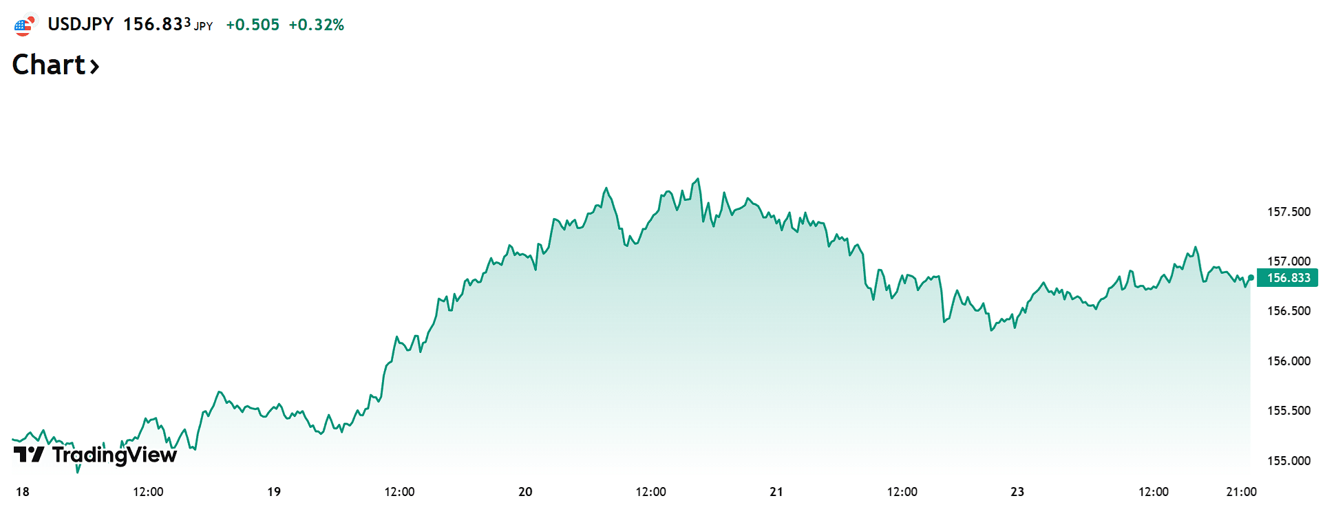 En ce 24 novembre, la paire dollar/yen s’échange autour de 156,5 yens pour un dollar, ce qui le place dans la fourchette où Tokyo était intervenu en 2024 (entre 155 et 160). De plus, les volumes sont faibles en raison de Thanksgiving, ce qui accroît le risque de fortes fluctuations.
