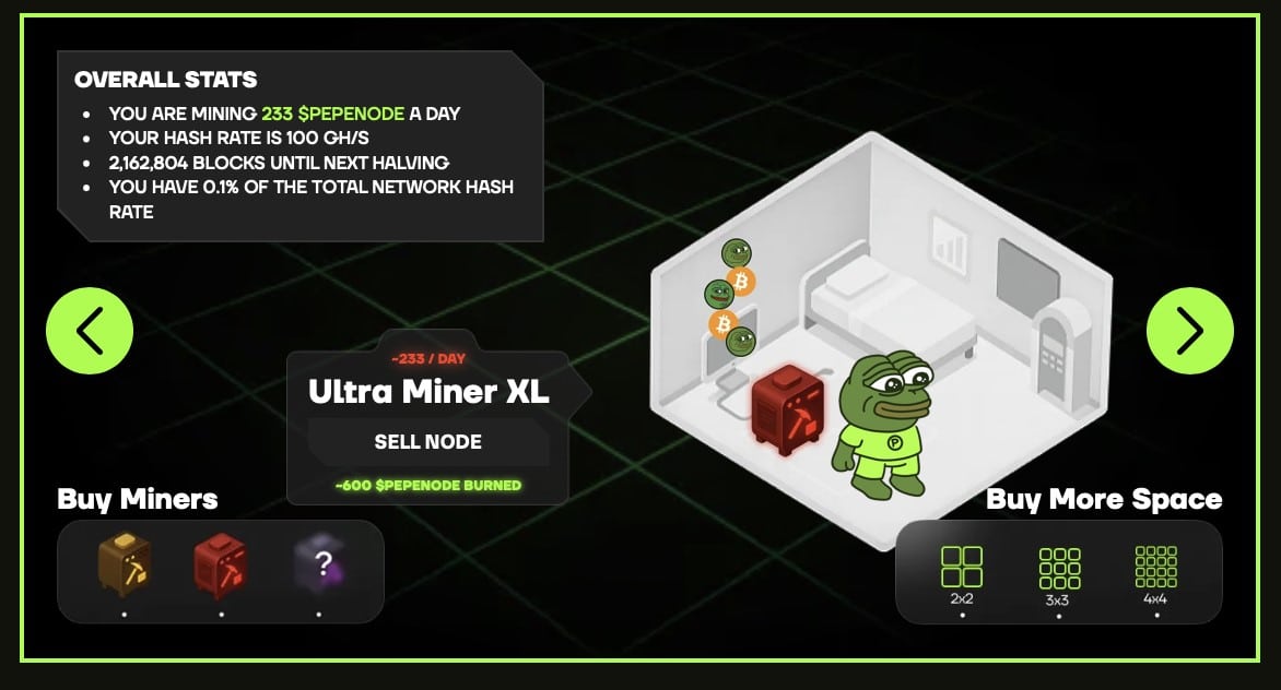 Cependant, un nouveau crypto, PepeNode (PEPENODE), propose une option sans matériel ni frais d’électricité. Ce projet rend le minage comme un jeu en ligne simple à utiliser, sans difficultés techniques. Les joueurs créent leurs fermes en ligne, comme dans le jeu FarmVille basé sur la blockchain. Chaque amélioration virtuelle déverrouille des récompenses crypto qui peuvent être utilisées dans l’écosystème.