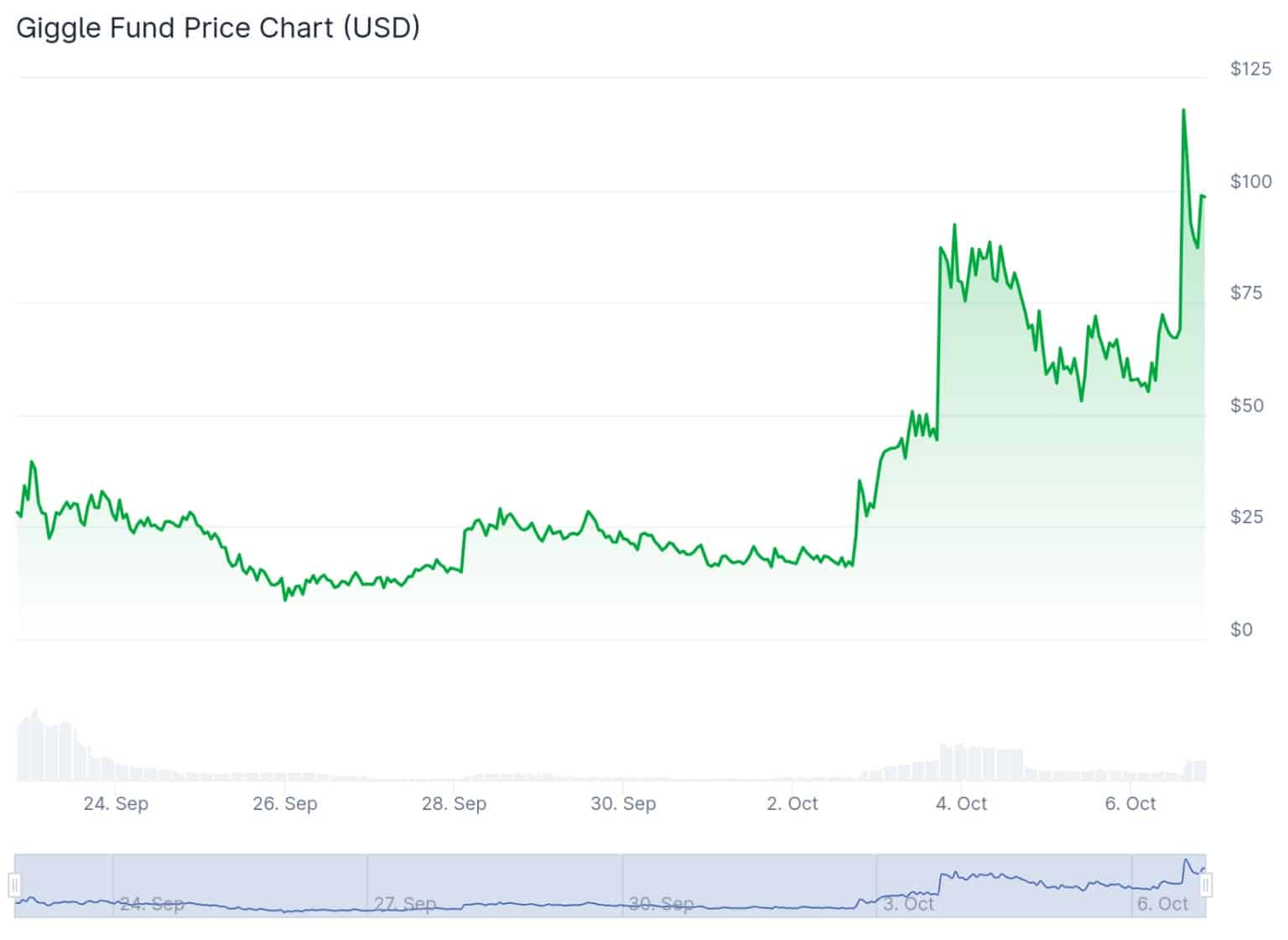 La cause est noble et le marché l’a clairement reconnu. GIGGLE a bondi à 117 dollars lundi, affichant une hausse de 313 % depuis le 24 septembre. Le token s’est ensuite stabilisé à 98,41 dollars avec une valorisation de 98 millions au moment de la rédaction.