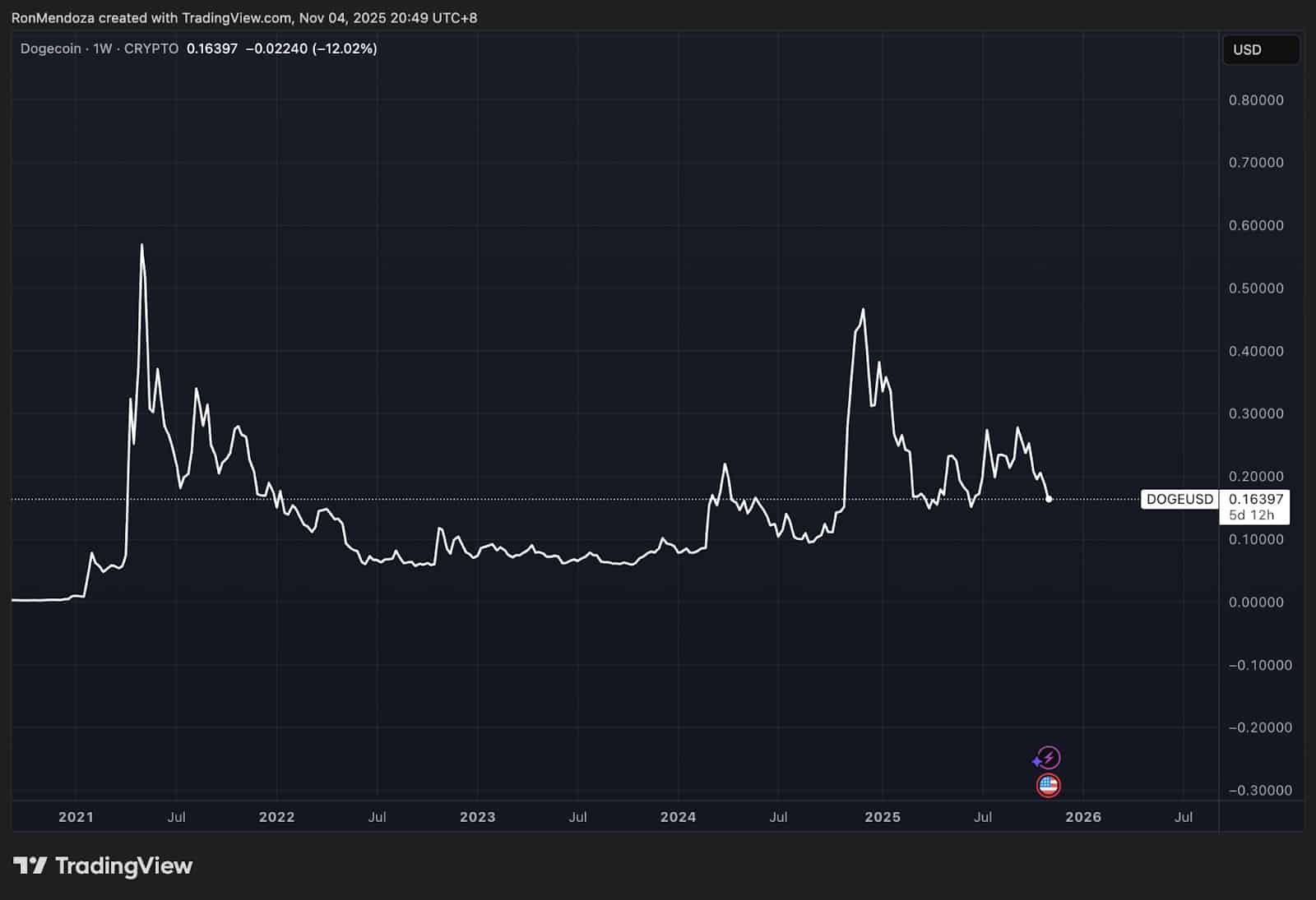 Mais DOGE chute de 9 % en 24h, et 36,1 % sur un mois. Le Bitcoin glisse sous les 103 000 $, aggravant la pression sur le marché. DOGE reste 77 % en dessous de son record, l’effet Musk ne suffit plus. Le marché ne réagit plus comme en 2021, la magie semble dissipée.