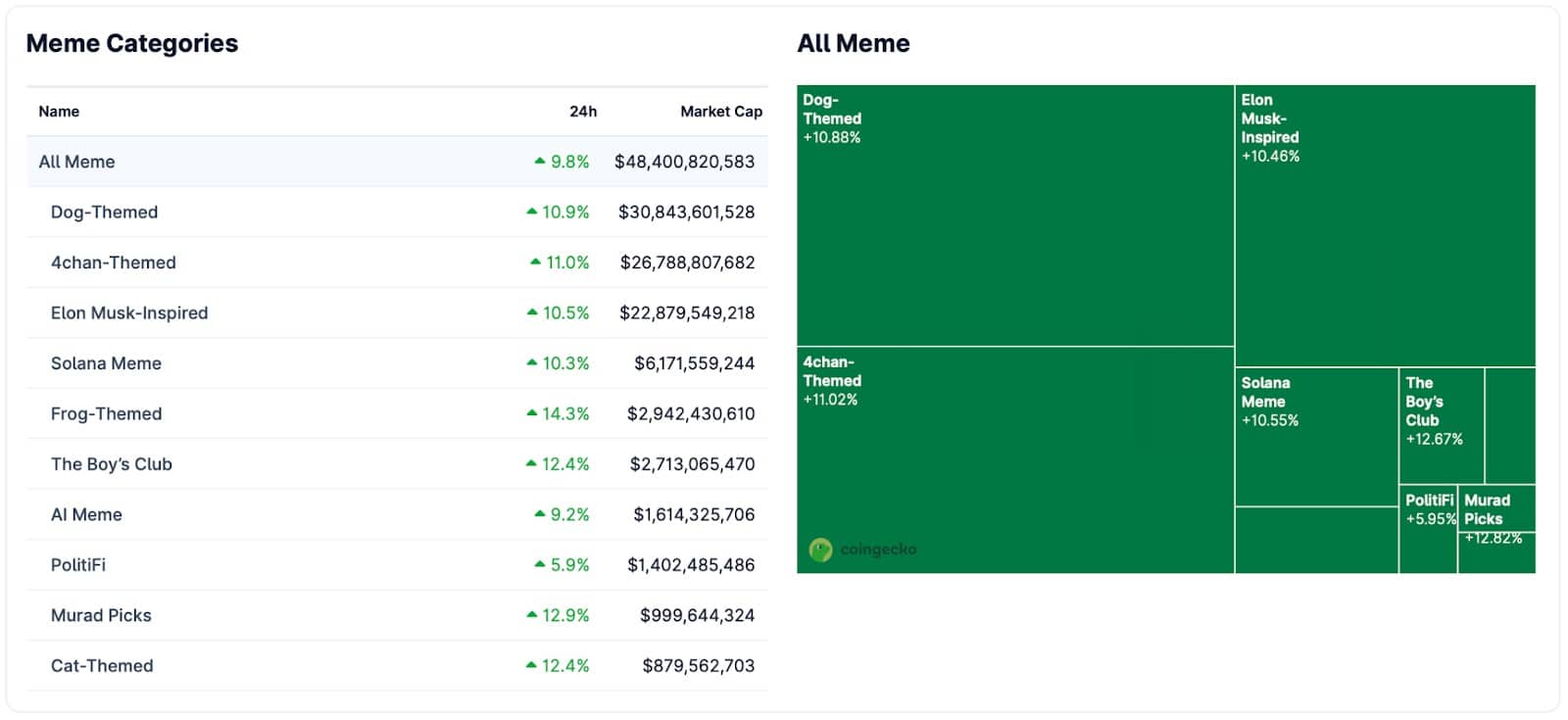 Les sélections de Murad Mahmudov ont suivi à +12,9%. Une hausse solide de 12,4% a été observée dans les catégories « Boys Club » et les tokens chats. Cette dynamique est à l’origine des performances explosives de certains actifs.