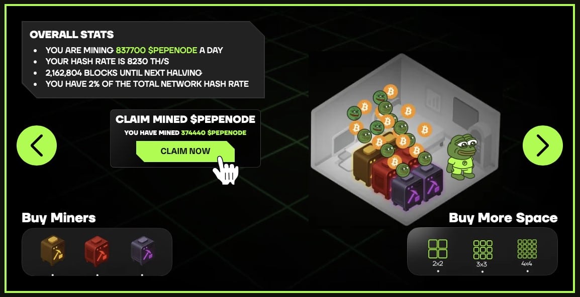 PepeNode est un jeu crypto en développement qui simule la manipulation du bitcoin dans un monde virtuel. C’est là que les joueurs gèrent leur propre ferme numérique et optimisent leurs gains. Ils échappent ainsi aux coûts matériels et énergétiques du mining physique.