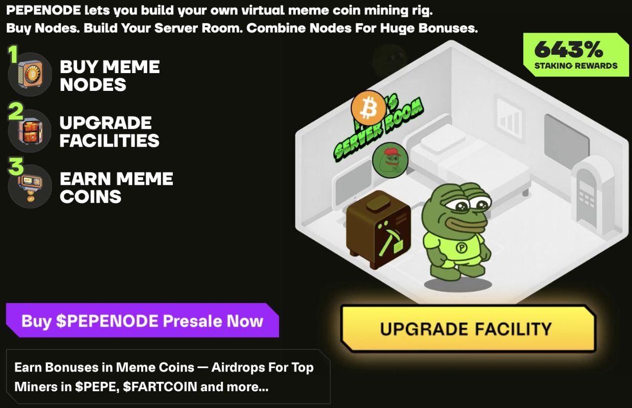 Mais PepeNode va plus loin en gamifiant tout le processus de minage virtuel. Les joueurs peuvent utiliser leurs tokens PEPENODE pour améliorer leur salle serveur digitale. Chacun commence avec un espace vide et choisit ses nœuds et ses upgrades.