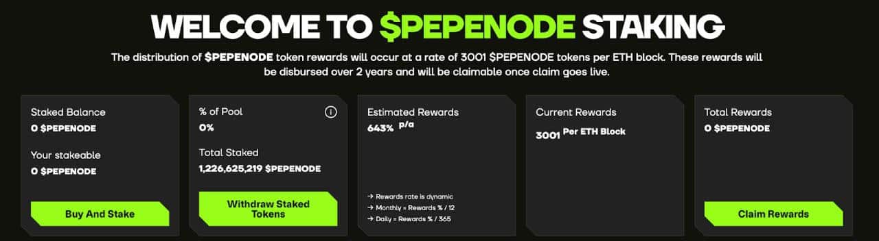 Contrairement aux préventes traditionnelles, PepeNode permet de miser dès qu’un achat est effectué. Les jetons achetés sont mis en jeu et gagnent simultanément un APY pré-lancement dynamiquement calculé de 643%. Ce rendement instantané a attiré l’attention des investisseurs avides de rendement. La mise est fluide et gamifiée, et maintient une faible abstraction comme elle est intégrée dans l’écosystème du jeu lui-même.