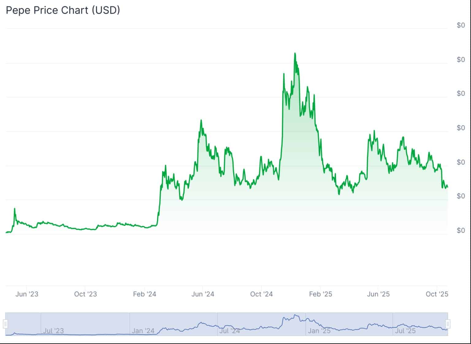 PEPE fait encore mieux : +12 518 % depuis février 2023, avec un pic à 50 762 %, soit un x508 depuis son plus bas. Ces chiffres redéfinissent les standards du marché crypto.