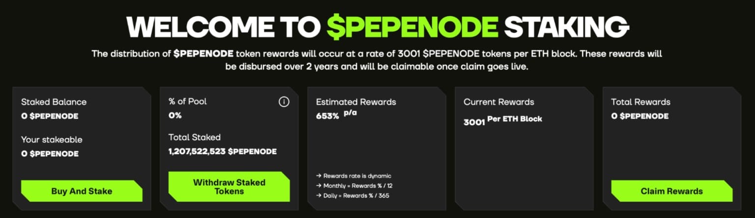 PepeNode récompense ses investisseurs avant même l’ouverture officielle du jeu. Ainsi, l es détenteurs de tokens PEPENODE bénéficient déjà un revenu passif. Le protocole de staking natif offre un 653% APY. Le temps d’attente devient une opportunité de gains concrets.
