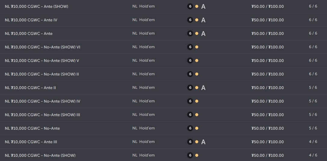 Des tables spécifiques stimulent l’action grâce à un système d’antes obligatoires. Dimanche dernier, le YouTubeur Ryan Depaulo affrontait les joueurs. Linus Loeliger a gagné un pot de 12 500 USDT avec seulement un 8. Découvrez tous les détails de la promotion CGWC directement sur le site de CoinPoker.
