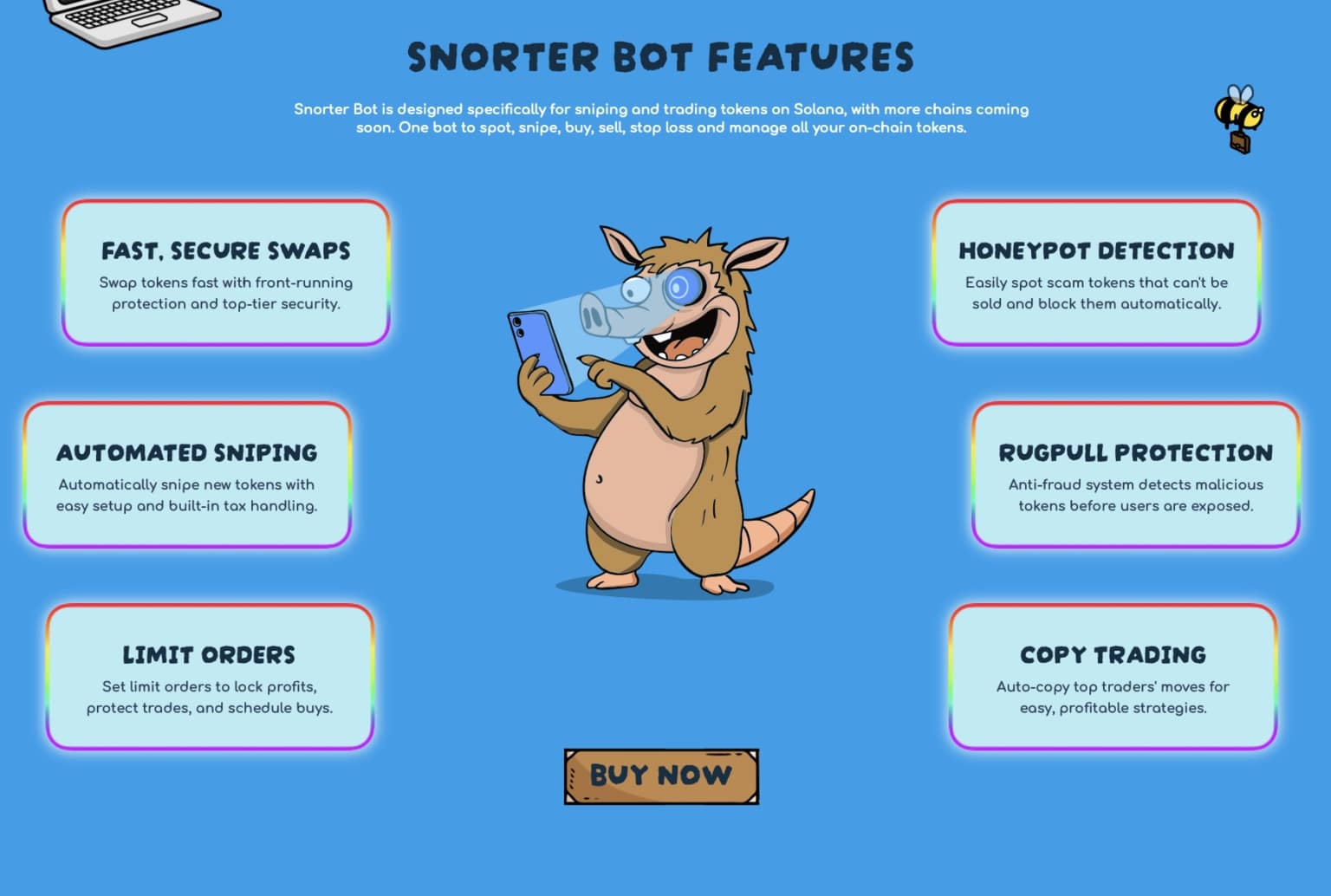 En tête de cette chasse aux opportunités, on retrouve Snorter Bot Token (SNORT). Ce bot de trading Telegram Solana repère les memecoins 100x avant tout le monde. Il est fait pour les traders qui ne suivent pas le hype, mais qui le devancent.