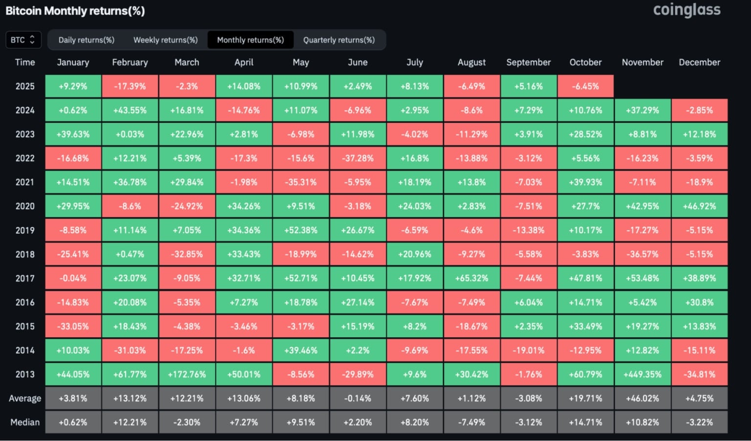 Actuellement, on est dans la période la plus lucrative du cycle – octobre et novembre. Le Bitcoin a toujours gagné en moyenne 19% et 46% au cours de ces mois. Et quand Bitcoin s’envole, les flux suivent toujours le même chemin. D’abord vers les blue chips, puis vers les small caps. Finalement vers les memecoins à risque qui font des millionnaires du jour au lendemain.