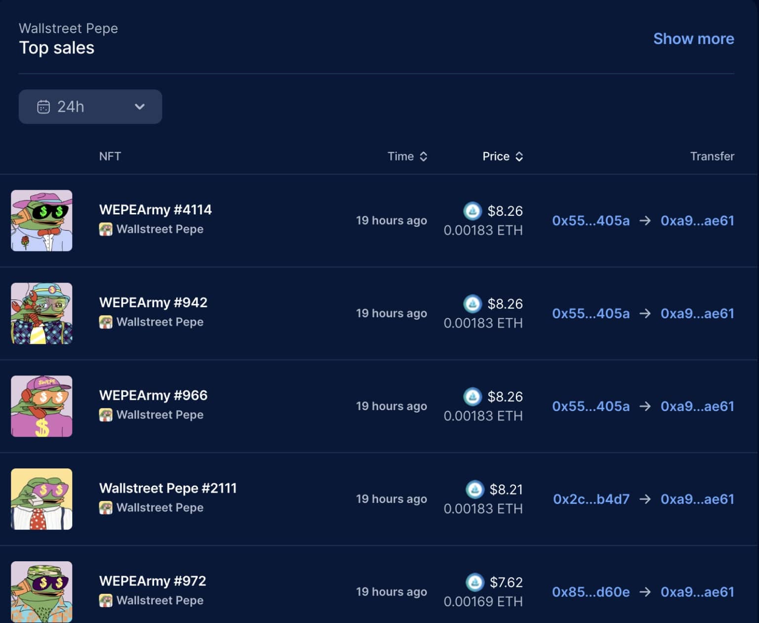 Selon les données de DappRadar, le prix des NFT WEPE a grimpé de 7,62 $ à 8,26 $ en 24 heures sur le marché secondaire. Cette dynamique confirme l’intérêt croissant pour l’écosystème WEPE, à l’approche de l’airdrop du 14 octobre.