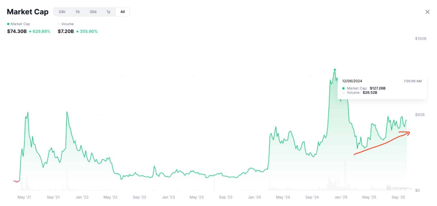 Bitcoin atteint de nouveaux sommets historiques au-delà de 125 000 dollars. La capitalisation du marché des memecoins s’apprête à doubler. Elle marche vers un retour à son ATH enregistré en décembre 2024. Wall Street Pepe (WEPE) pourrait mener la charge.