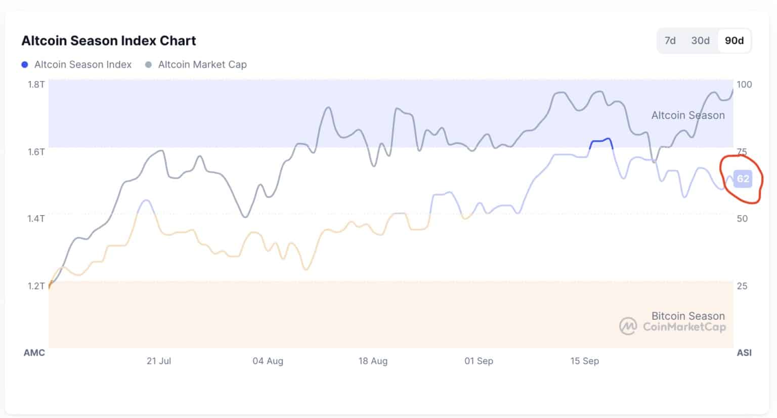 L’altcoin season est sur le point de décoller. Wall Street Pepe est bien positionné pour en récolter les fruits. L’indice CMC Altcoin Season se situe à 62. L’altcoin season commence à partir d’une lecture supérieure à 75.