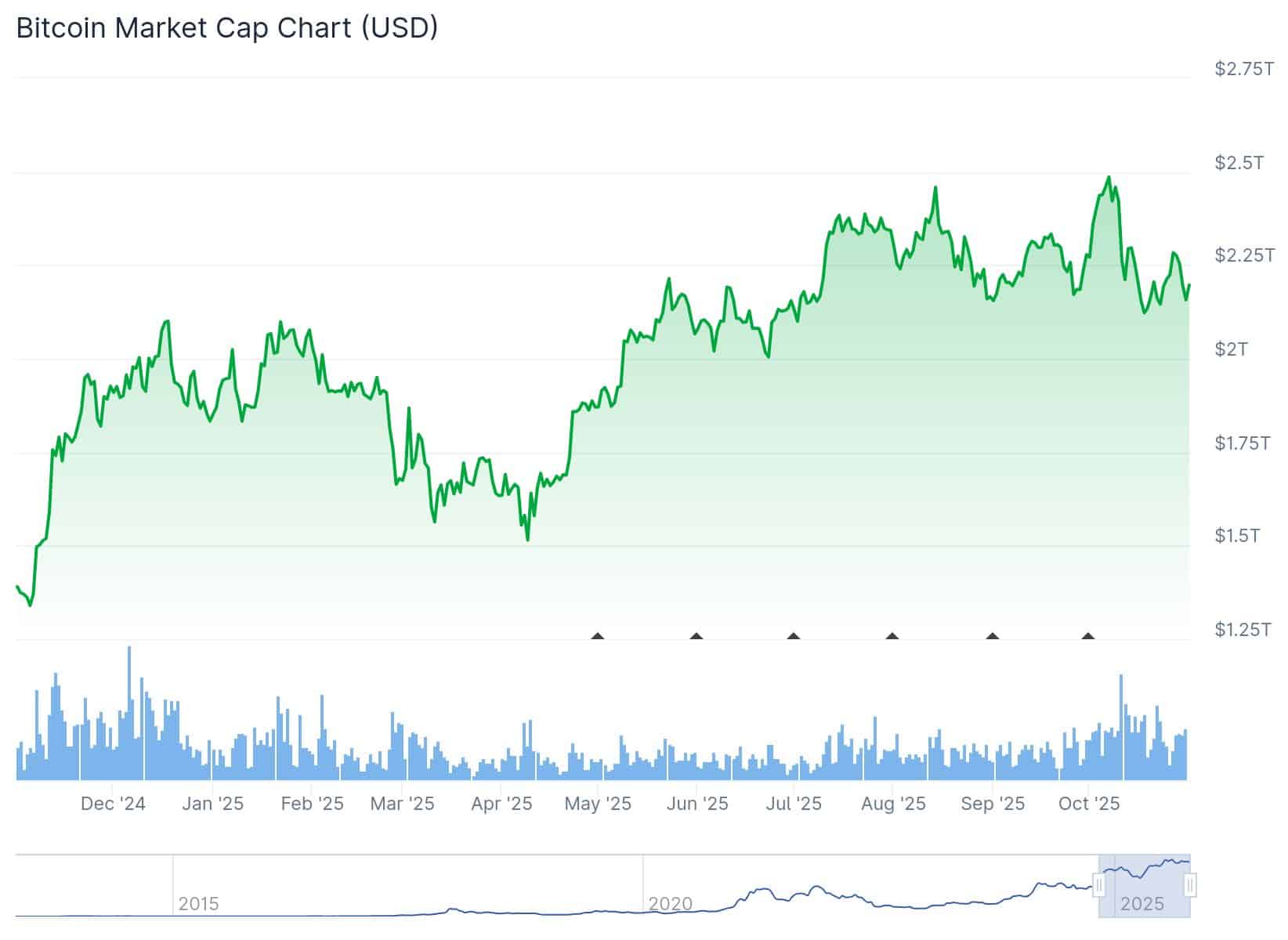 Dix-sept ans plus tard, Bitcoin n’a plus rien d’un projet marginal. L’actif s’est imposé comme une véritable classe d’investissement, comparable à l’or ou aux grandes valeurs technologiques. En 2025, il s’échange souvent au-dessus des 100 000 dollars. Sa capitalisation dépasse désormais les 2 000 milliards de dollars, un seuil symbolique qui confirme son statut d’actif mondial.