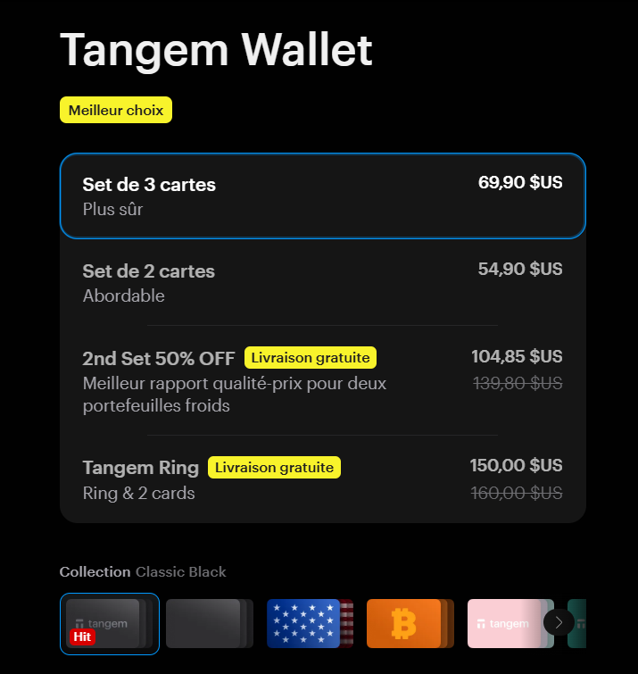 Ensuite, en termes de sécurité, le Tangem wallet n’a rien à envier aux autres, que ce soit Ledger Nano ou Trust Wallet. Plusieurs clients l’appelent même : “le cold wallet nouvelle génération”. En ralliant facilité et sécurité inégalée, il offre la possibilité de stocker leurs jetons en toute confiance et sans process complexe ni seed phrase. Et le prix du wallet est assez compétitve face à la concurrence.